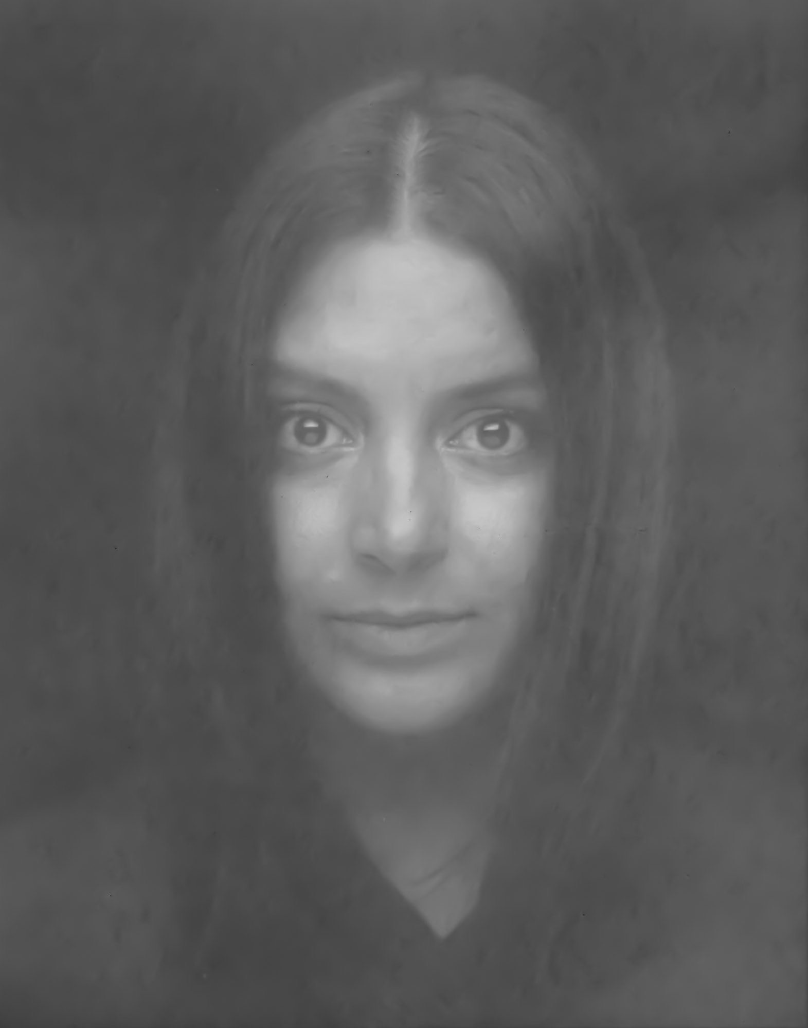 Captured with a medium format pinhole film camera and printed as a negative image on gelatin silver paper.